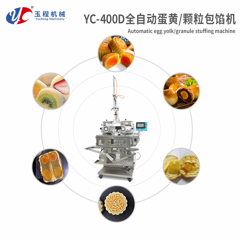 適用范圍:可適用于:烘焙類產品、魚漿類產品、早餐類產品、蒸煮類產品d等,另可生產四重包餡產品如:四重流心月餅、漸變色流心月餅、雙色和果子、金鑲玉月餅。